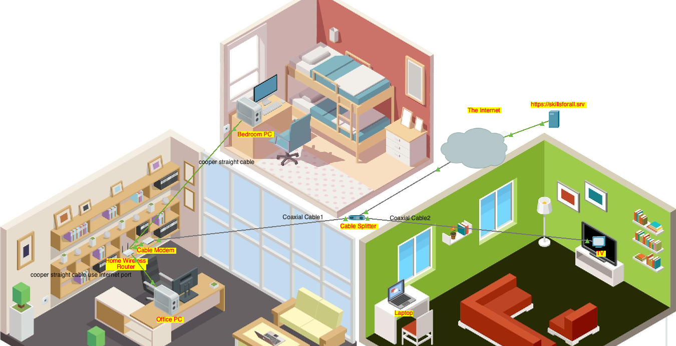 - Used a coaxial cable to connect the splitter to both the modem and TV